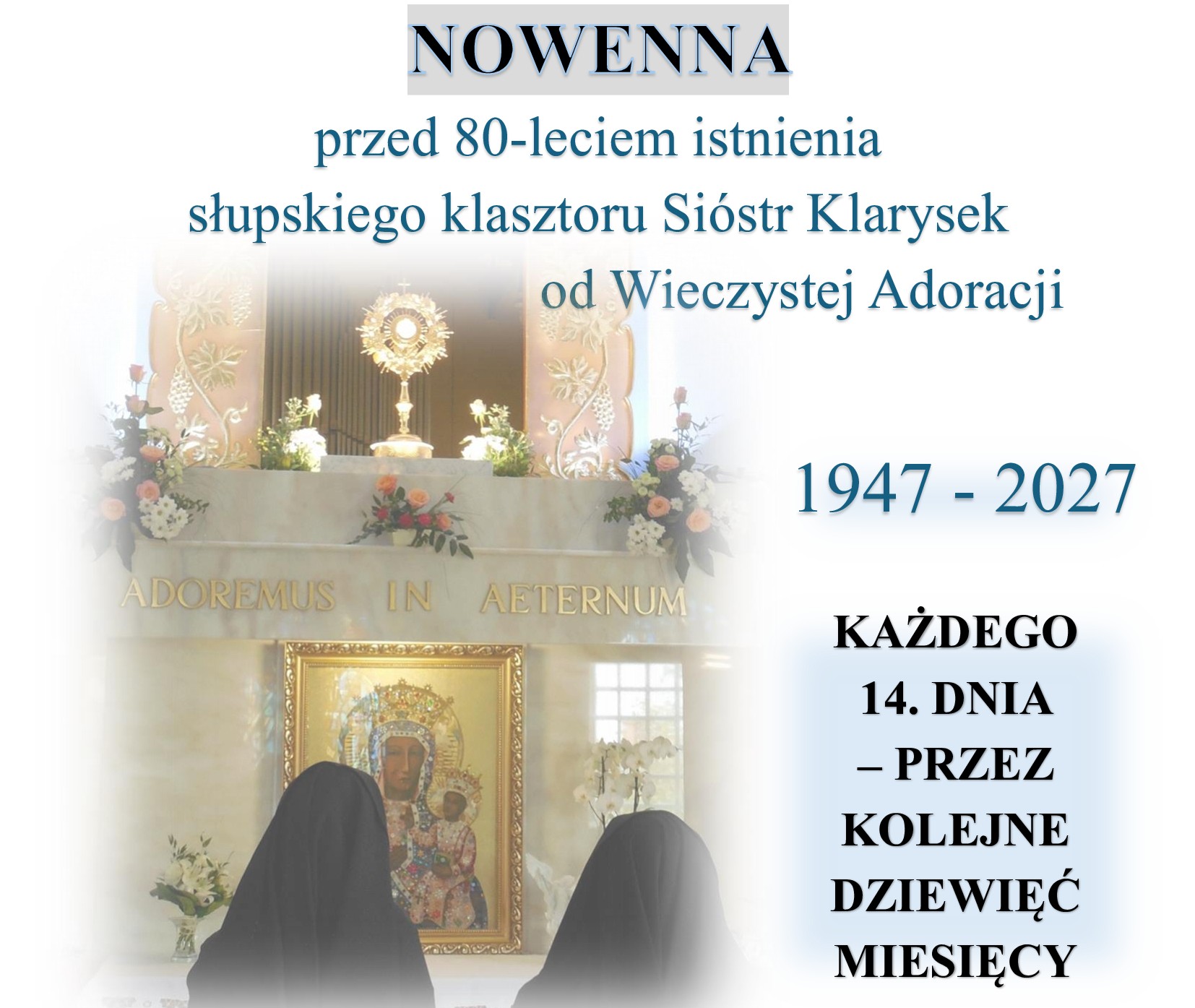 14 kwietnia rozpoczęłyśmy nowennę dziękczynną, która ma nas przygotować do obchodów jubileuszu 80-lecia słupskiego klasztoru. Przez kolejne dziewięć miesięcy, każdego 14. dnia miesiąca, gromadzić się