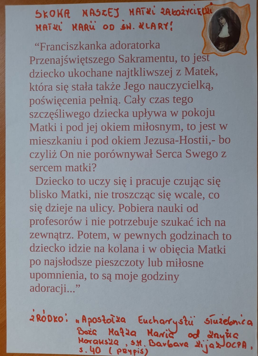 Nasza Siostra, S. M. Patrycja od Maryi Oblubienicy Ducha Świętego dzieli się swoją pasją