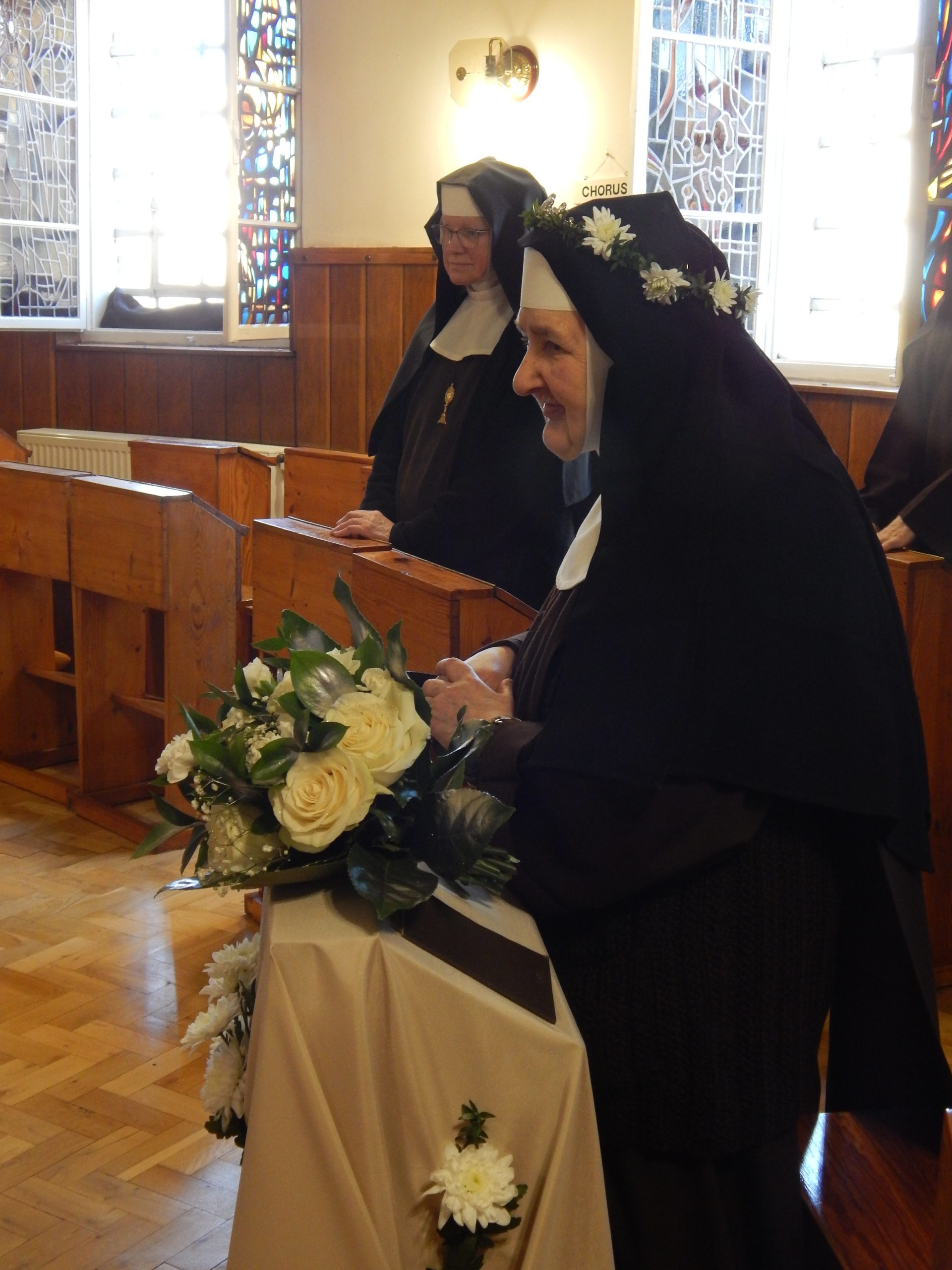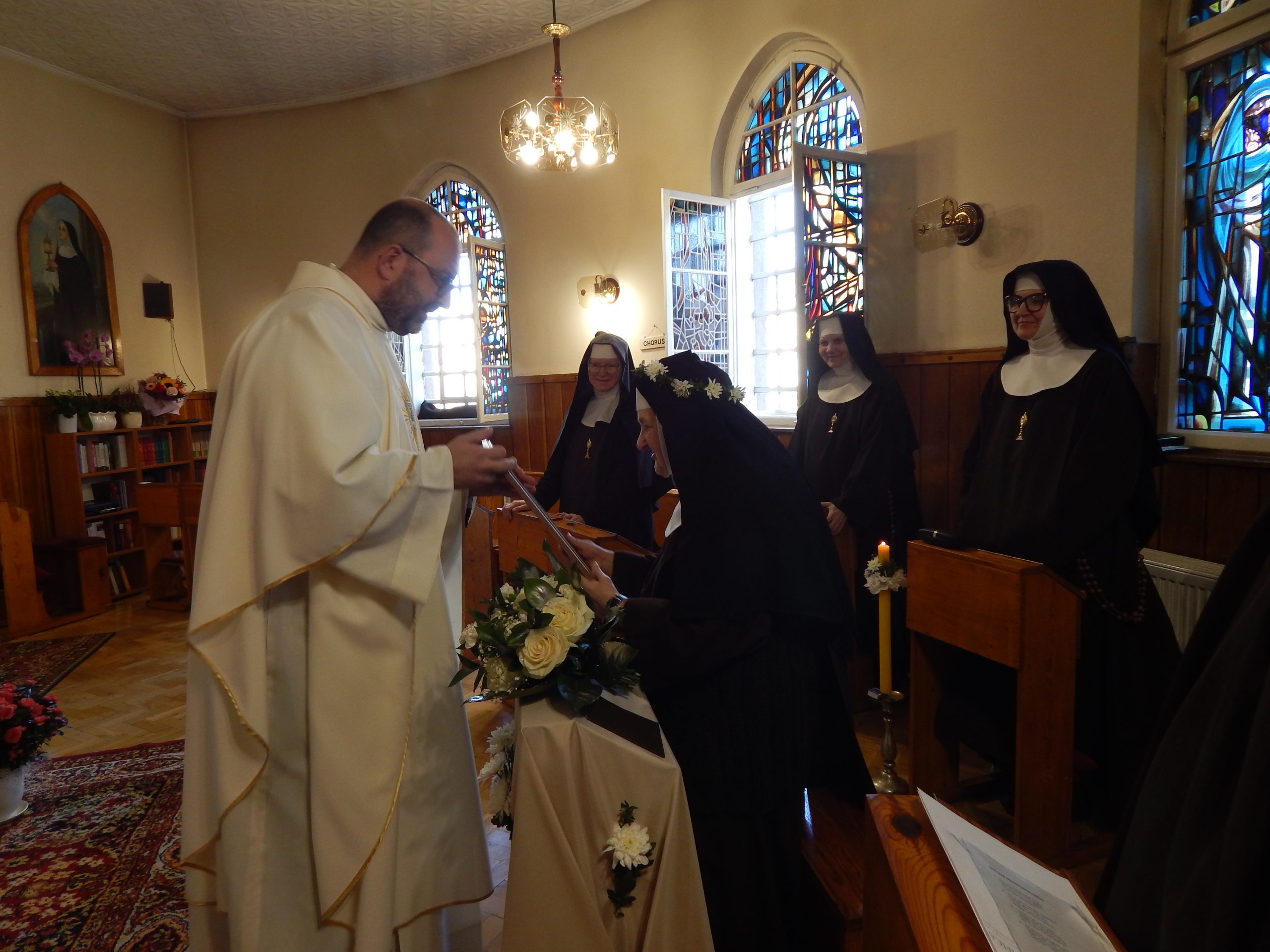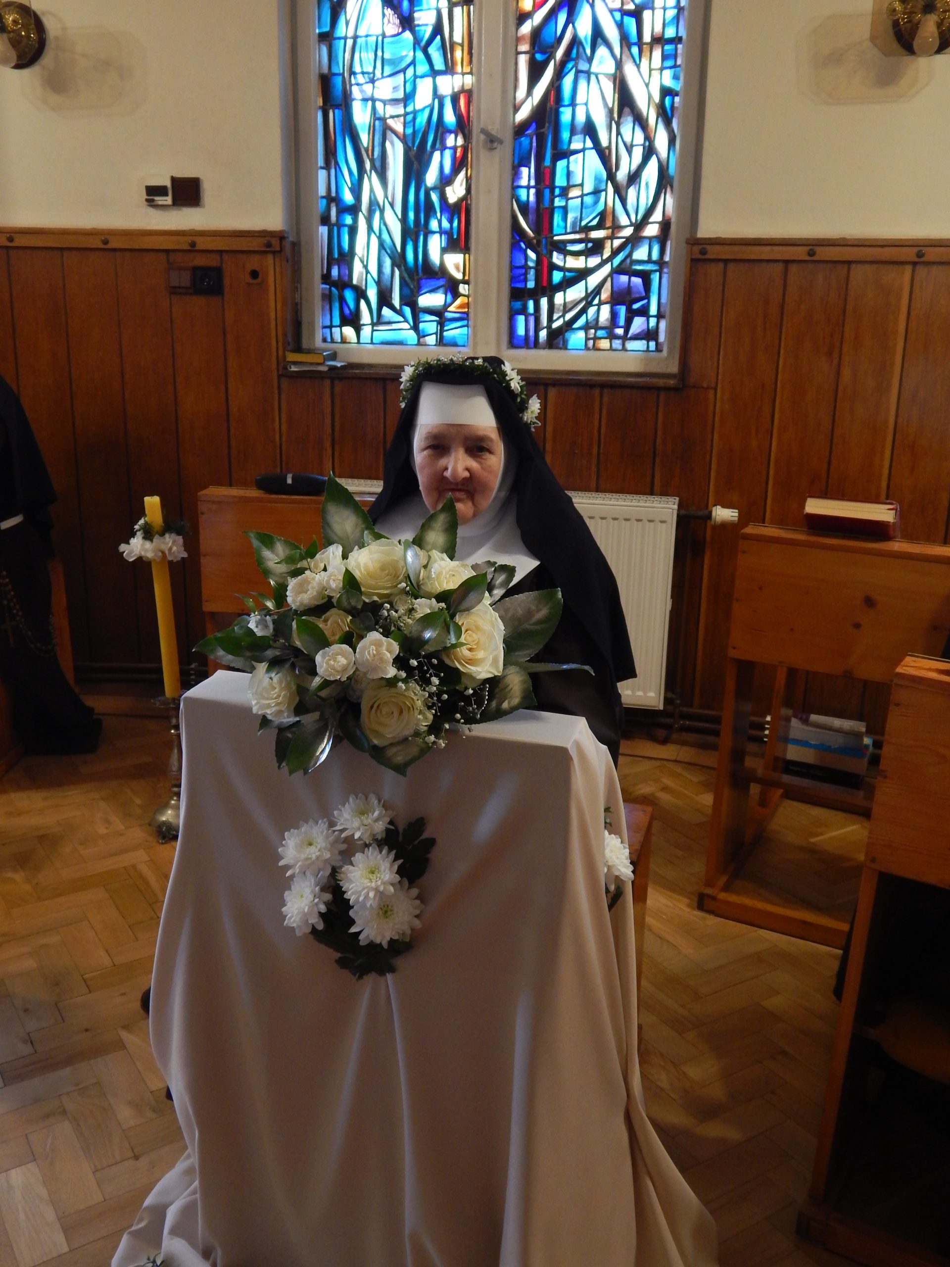 W sobotnie przedpołudnie, 21 marca, w naszej klauzurowej kaplicy uczestniczyłyśmy we Mszy św., która była naszym dziękczynieniem za 60 lat ślubów zakonnych s. M. Krystyny od Przemienienia Pańskiego. Uroczystą Eucharystię sprawował ks. Andrzej Pawłowski – wikariusz słupskiej parafii pw. św. Maksymiliana M. Kolbego, a prywatnie – bratanek naszej Jubilatki.