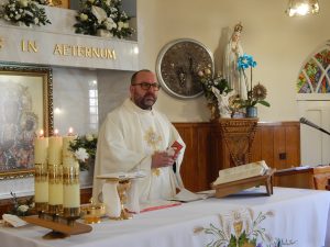 W swoim kazaniu kapłan określił tą rocznicę, jako „diamentowy wiek miłości”. Nawiązując do pierwszego czytania z księgi proroka Jeremiasza, ks. Andrzej ukazał jego związek z Jezusem. „Jeremiasz zapowiadał Jezusa nie tylko mocą słowa, ale i całą historią życia: również odrzucony był przez swój naród. Jeremiasz, jako baranek, który się nie żali; jako zielone drzewo, które ma być wycięte. Choć ostatniego zdania z tego czytania, Jezus by nie wypowiedział”.