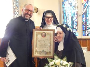 Po Mszy św. ks. Andrzej wręczył Naszej Najmilszej Siostrze wyjątkowy prezent – błogosławieństwo Ojca Świętego Leona XIV.