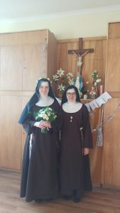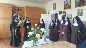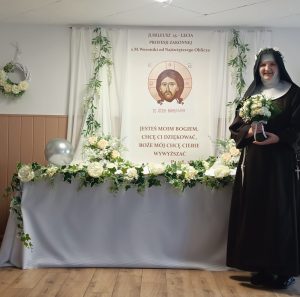 A my naszej Kochanej Jubilatce, dziękując za to, że jesteś z nami, dziękując za wszystkie dary, jakimi ubogacasz, Kochana Siostro, naszą Wspólnotę, Zakon i cały Kościół Święty, życzymy, aby Boski Oblubieniec zawsze był dla Czcigodnej Jubilatki życiem i pokojem. Niech Ojciec miłosierdzia obdarza Cię nieustanną radością z daru powołania – czy szlak będzie wiódł przez ukwieconą łąkę czy spowitą mgłą dolinę. Niech miłość Jezusa Chrystusa będzie Twoją siłą i kotwicą. Niech Duch Święty podtrzymuje w Najmilszej Siostrze żywą nadzieję