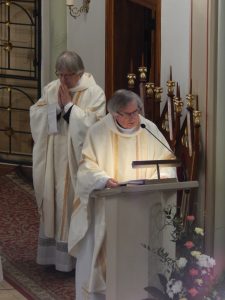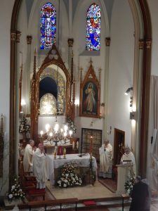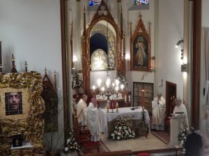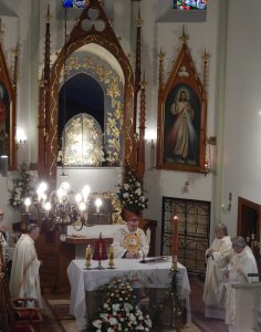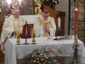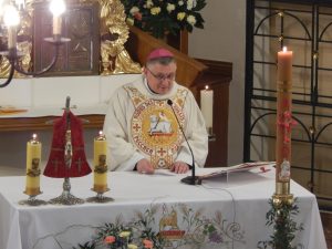 Na rozpoczęcie Mszy św. przedstawiciele Grupy Modlitwy św. o. Pio, w imieniu naszej zakonnej wspólnoty, Franciszkańskiego Zakonu Świeckich oraz wiernych z naszego kościoła, powitali Ks. Biskupa. Natomiast, Jego Ekscelencja, podkreślając znaczenie tego miejsca dla diecezji oraz dla niego osobiście, sprawował tę Eucharystię w intencji naszych Drogich Jubilatek – N.W. Matki M. Bonawentury i s. M. Krystyny.