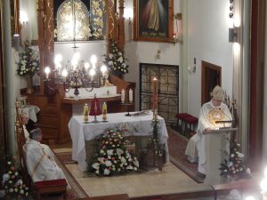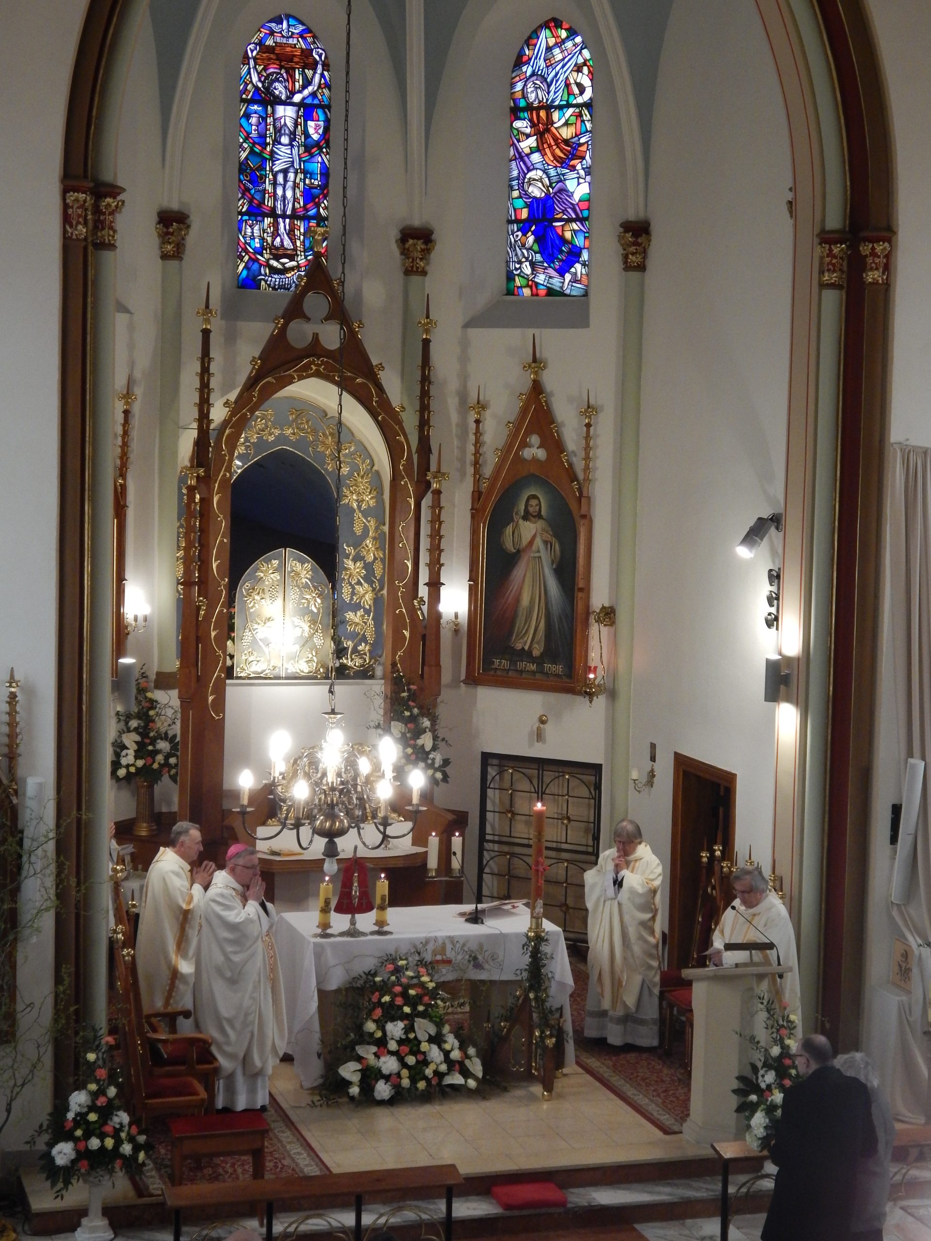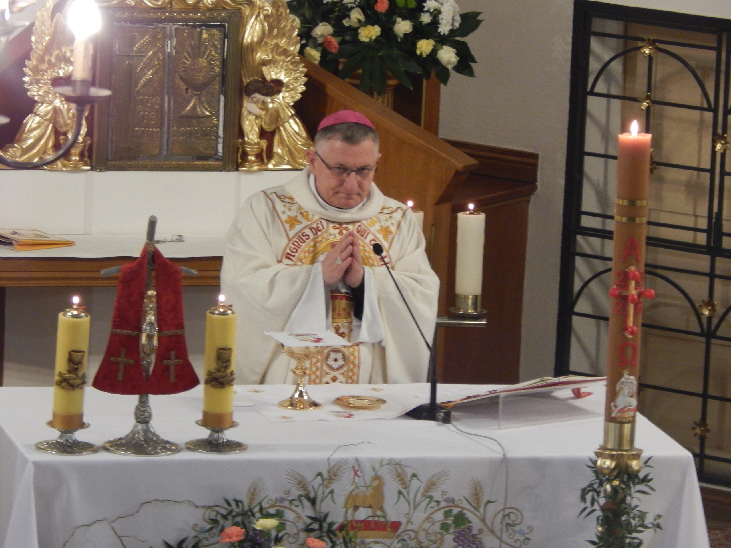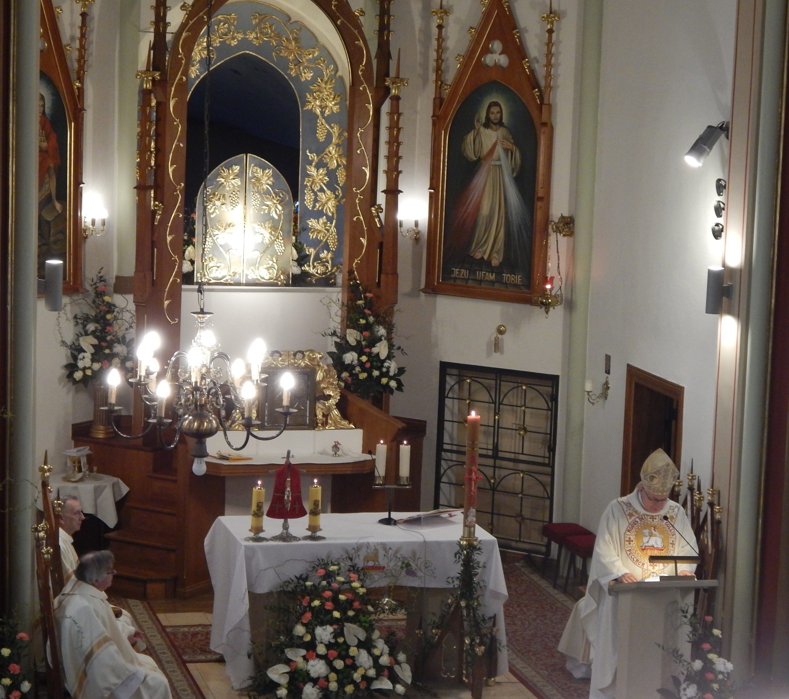 W Wielkanocny Poniedziałek wieczornej Mszy św. w naszym kościele przewodniczył J.E. bp Krzysztof Zadarko. Była to jego pierwsza wizyta u nas po nominacji na ordynariusza diecezji. Przy Chrystusowym ołtarzu obecni byli również: ks. Jerzym Urbański, proboszcz parafii pw. NSJ, na terenie której znajduje się nasz klasztor; ks. Józef Domińczak, proboszcz parafii pw. Św. Jacka oraz nasz ks. Kapelan Józef Kwieciński.